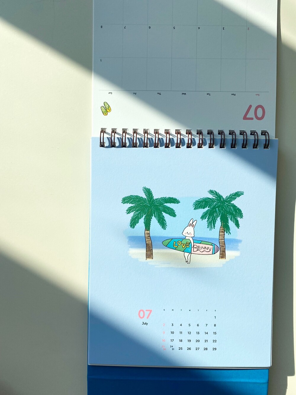 +월간 달력 수채화 느낌의 베니 일러스트, 12가지가 나란히 월별로 들어가 있으며 일러스트가 들어가지 않은 면은 메모로 최대한 활용할 수 있도록 디자인했습니다.