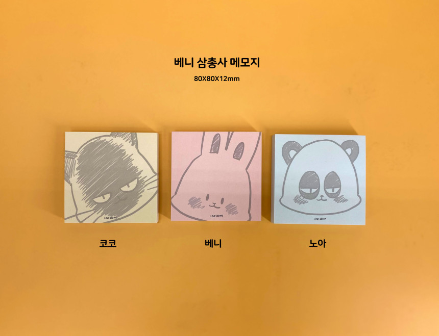 베니 삼총사 메모지 세트(2종, 비접착식)입니다.