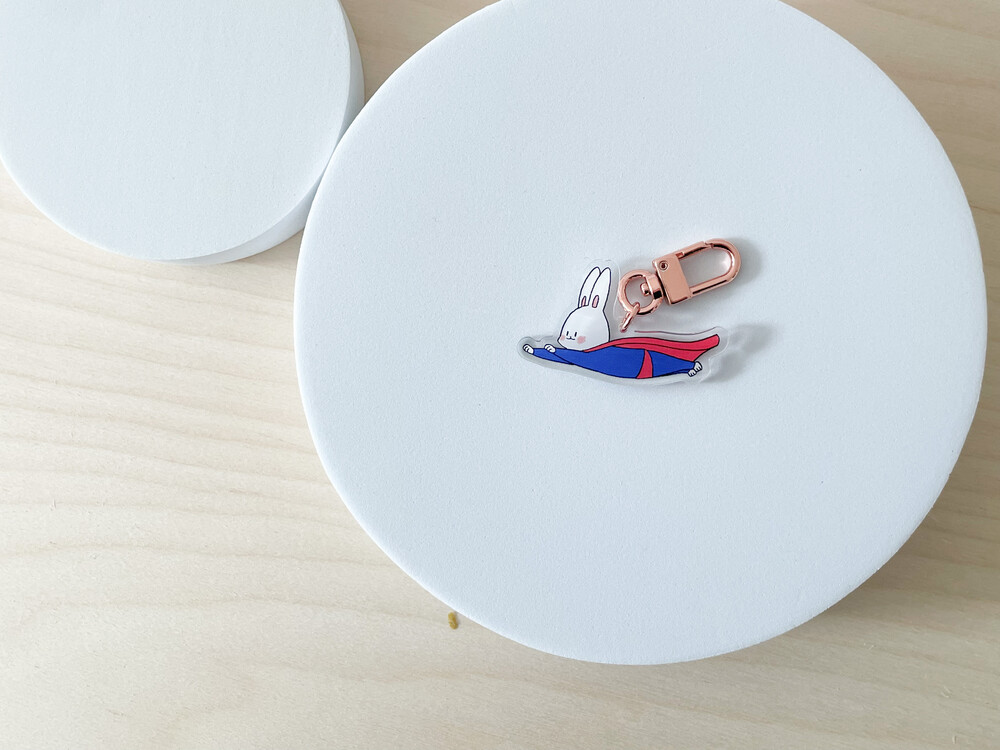 신제품 베니 키링의 경우 제작단가의 상승으로 기존의 방식으로 제작을 했을 경우 판매가가 많이 높아지게 되어서 이번 키링상품은 기존의 양면 아크릴키링 방식이 아닌 단면만 아크릴로 되어 있는 형태로 제작을 했습니다.
